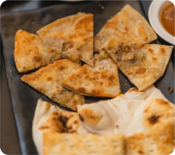 Imagine tearing into soft, pillowy naan, flaky parathas, or traditional rotis, hot and fresh from the tandoor. Each bite is the perfect complement to our flavourful dishes.
